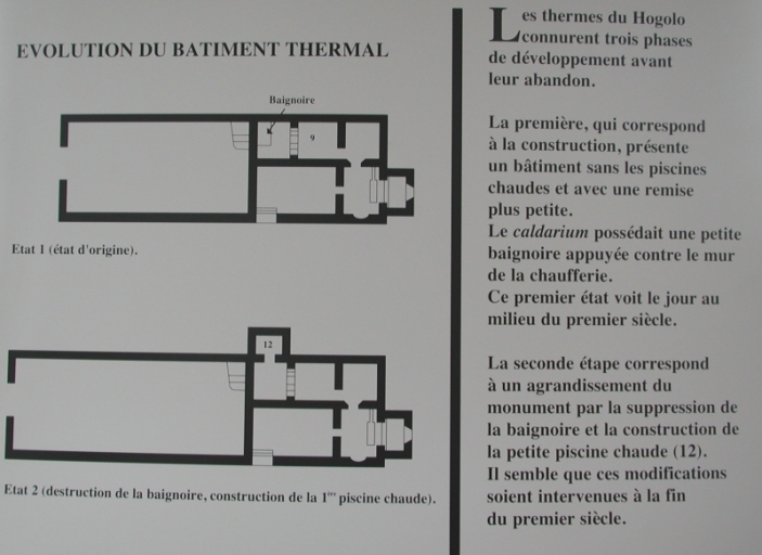 Etat d'origine et transformation des thermes : destruction de la baignoire et construction de la piscine chaudeImmatriculation