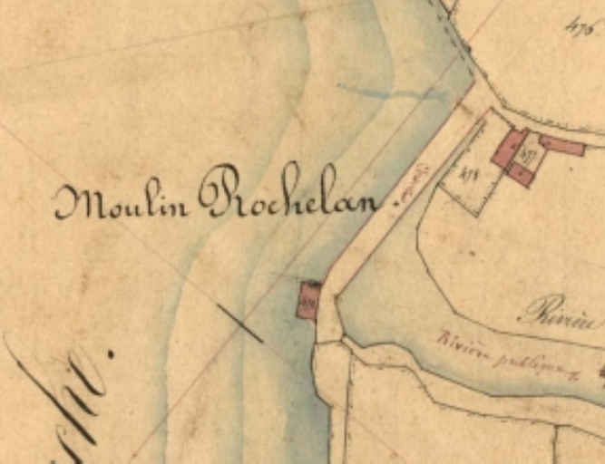 Moulin de Rochelan : détail cadastre de 1848, parcelle 477 (mairie de Plestin)Immatriculation
