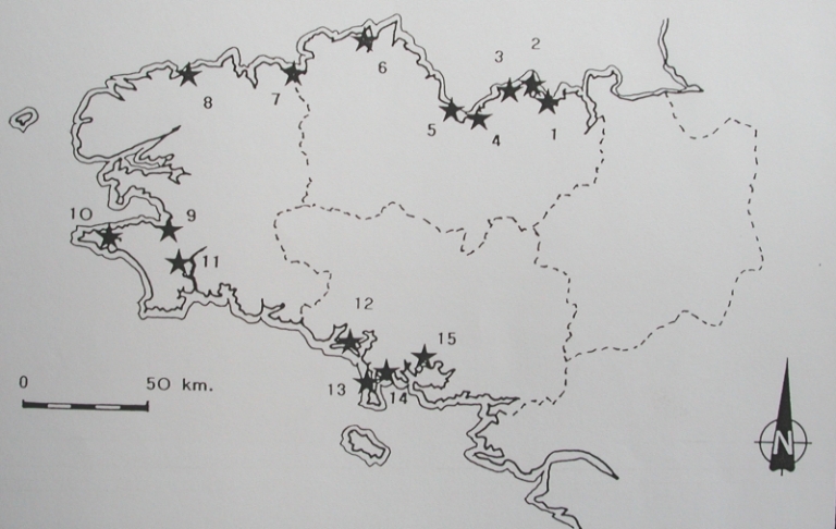 Détails : carte de localisation des thermes gallo-romains côtiers fouillés en Bretagne (SRA)Immatriculation