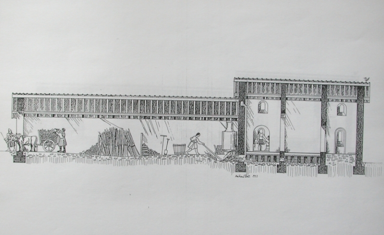 Dessin : chaufferie et réserve de bois du Hogolo (Matt May Michaël, 1993).Immatriculation