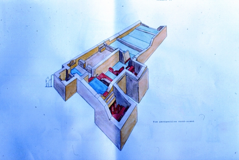 Vue axonométrique du bâtiment thermal : vision nord-ouest, 1992 (SRA, Bardel, Burel, architecte)Immatriculation