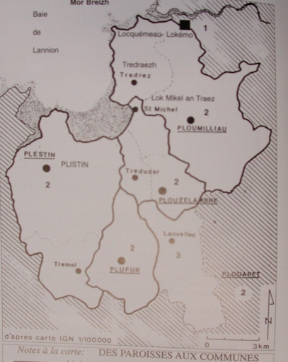 Dans : "Patrimoines et histoire du Pays de Plestin" / Jean Boutouiller. Plestin-les-Grèves : Centre culturel de Plastin, 2002, p 34.Carte.