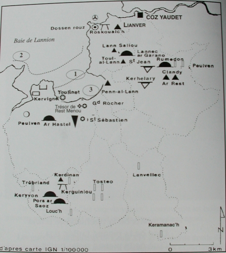 Dans : "Patrimoines et histoire du Pays de Plestin" / Jean Boutouiller. Plestin-les-Grèves : Centre culturel de Plastin, 2002, p 12.Carte.