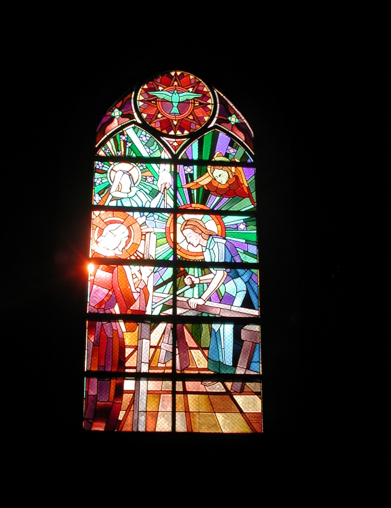 Vitrail de l'église Saint Colomban : le charpentier (Rault, 1974)Immatriculation