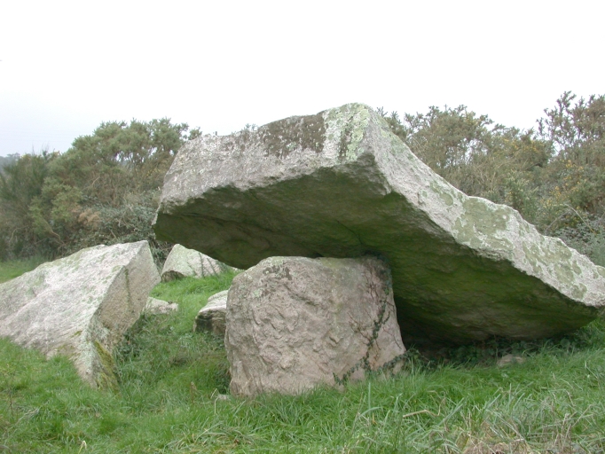 Erquy, Tertre de la Ville-Hamon. Vestiges funéraires du Néolithique : dolmen avec cairn [ISMH 1980]Immatriculation