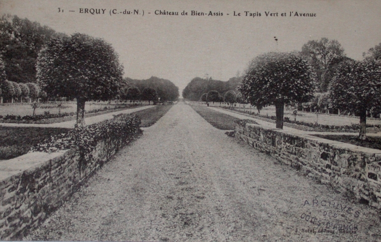 Château de Bienassis : vue générale de l'allée principale autrefois dénommée grande avenue de Bienassis, 1er quart du 20ème siècle (AD 22)Immatriculation
