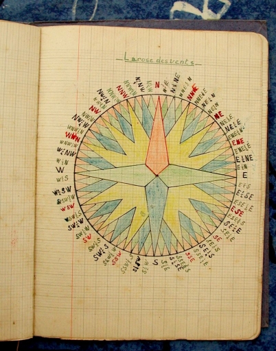 Dessin colorié d'un compas de doris (Raymond Pays)Immatriculation