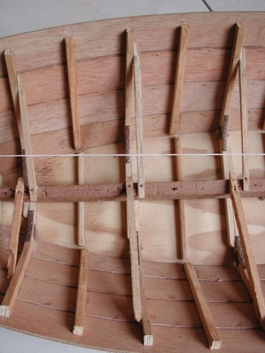 Vue de détail de l'assemblage des couples (membrures et varangues sur les bordées et la sole )Immatriculation