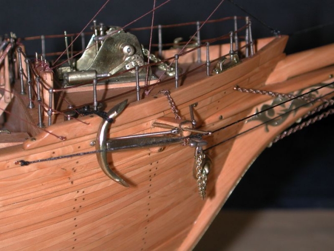 Vue de détail du beaupré : treuil à brinquebale ou guindeauImmatriculation