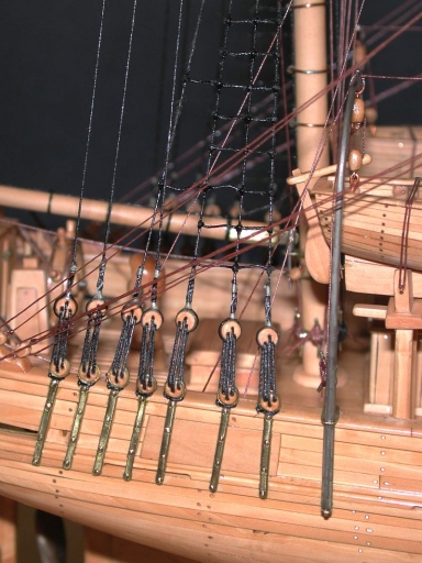 Vue de détail gréement : haubanage et rides des caps de moutonImmatriculation