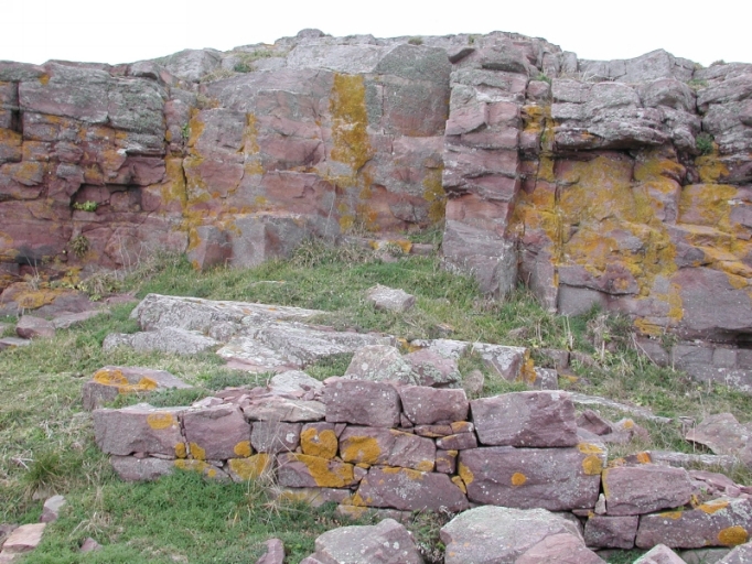 Emplacement supposé de la batterie des Trois Pierres d'Erquy sur la pointe du Chaperon (levée de terre et parement de pierres)Immatriculation