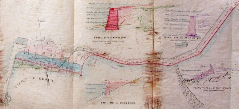 Projet de construction d'un quai et d'un chemin d'accés : profil type, 1884 (AD 22)Immatriculation
