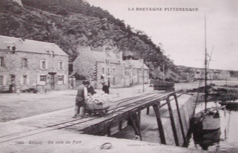 Le port d'Erquy au début du 20ème siècle : l'estacade en bois construites pour le chargement des pavés en bateauImmatriculation