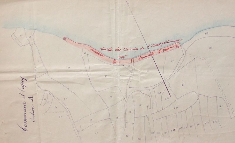Plan de la concession des Carrières de l'Ouest au port d'Erquy : projet de dépôt et de voie Decauville, 1885 (AD 22)Immatriculation