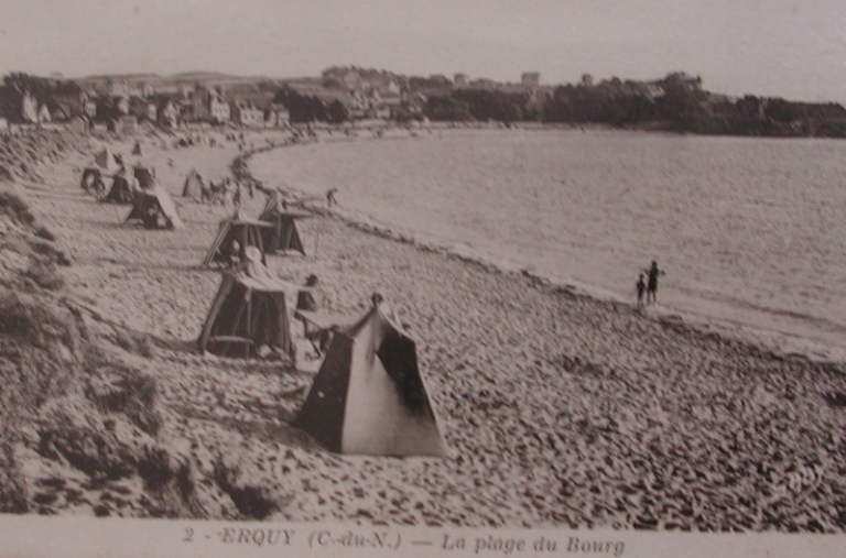Carte postale : la plage d'Erquy au début du 20ème siècle (AD 22)Immatriculation