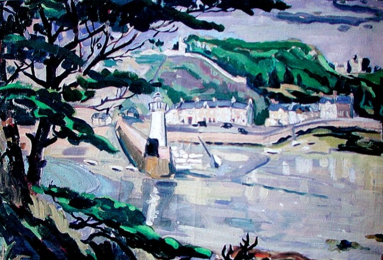 Huile sur toile : Le port d'Erquy à marée basse en 1945 (Yvette l'Héritier)Immatriculation