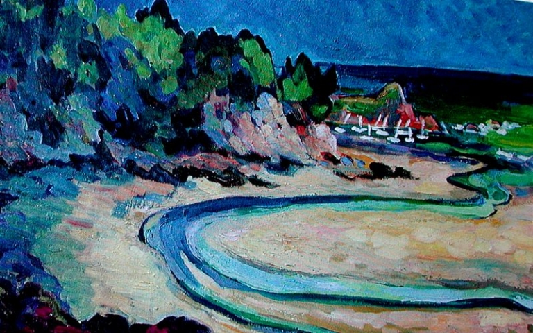 Erquy. Huile sur toile : La vallée Denys et le port des Hôpitaux (Yvette l'Héritier)Immatriculation
