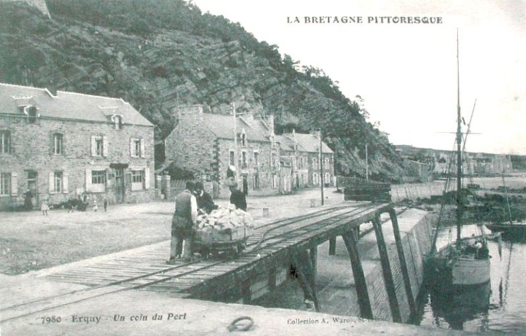 Déchargement de pavés acheminés par wagonnets à bord de la Sainte-JeanneImmatriculation