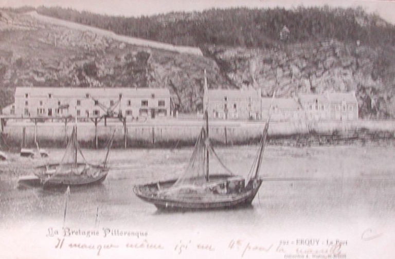 Bisquines au sec (avec leur chalut à perche) au port d'Erquy, au début du 20ème siècleImmatriculation