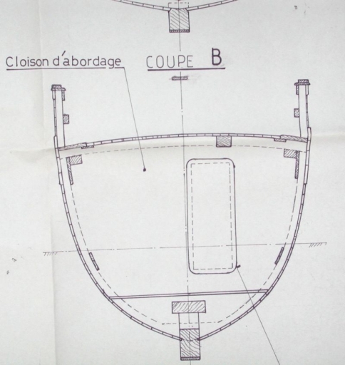 Coupe B : cloison d'abordage de la nouvelle Sainte-Jeanne au 1/20ème (Maryse Laurent)Immatriculation