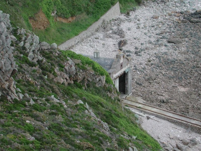 Vue en plongée de la falaise : façade est du bâtimentImmatriculation