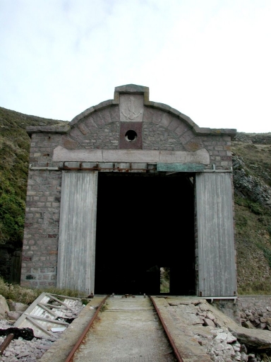 L'entrée principale de l'abri de sauvetage avec la cale et les railsImmatriculation