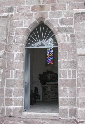 La porte d'entrée de la chapelle (grille ouverte), dont la façade a été rejointoyéeImmatriculation