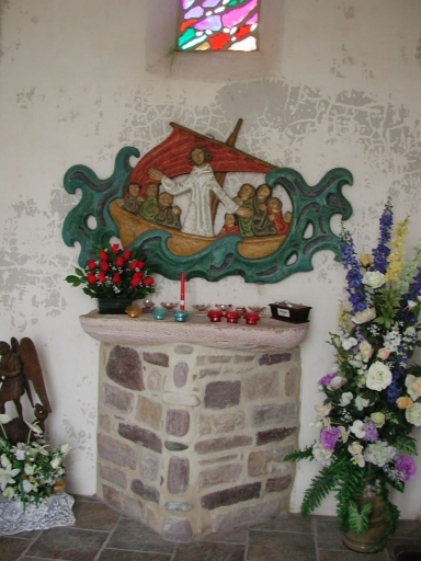Le nouvel autel avec son bas-relief : la tempête apaisée, oeuvre d'art polychrome (reproduction de l'abbaye de Solesmes)Immatriculation
