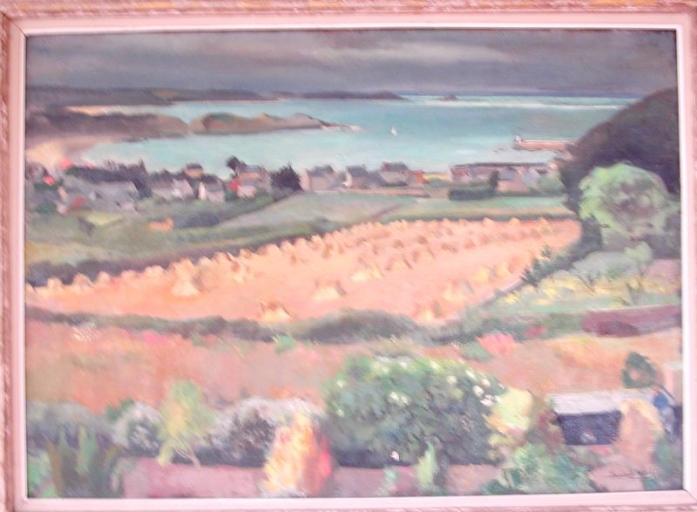 Huile sur toile, datée de 1955 : "Champs de blé devant Erquy" (Lucien Weil)Immatriculation