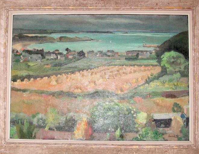 Huile sur toile, datée de 1955 : "Champs de blé devant Erquy" (Lucien Weil)Immatriculation