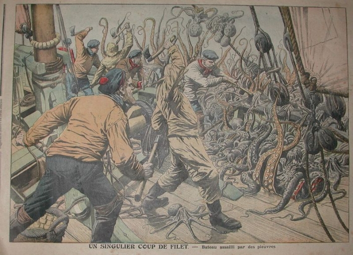 Les pieuvres assaillent un bateau de pêche de Cancale La Perle, dans la baie d'Erquy, sur le banc des Ruinais, en décembre 1906Immatriculation