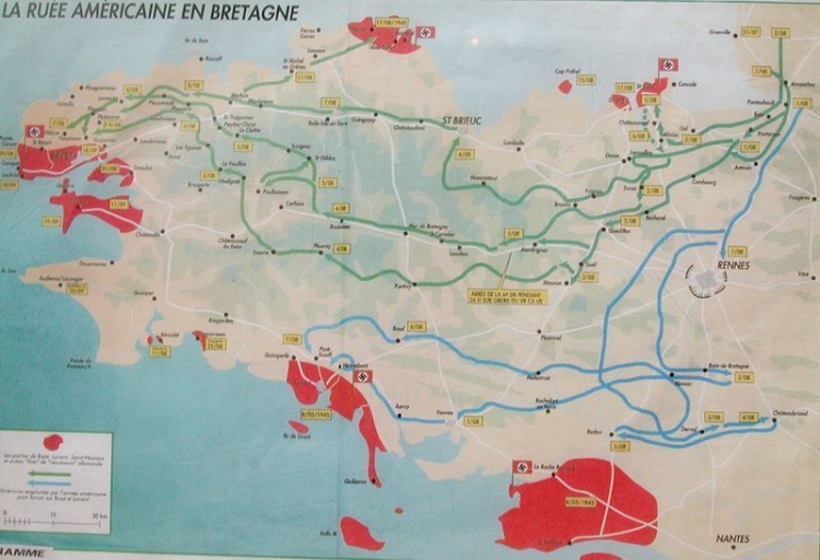 Cartographie de l'avancée de l'armée américaine en Bretagne (collection particulière)Immatriculation