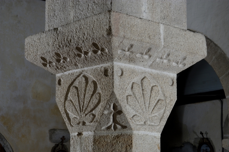 Locunolé, église paroissiale Saint-Guénolé : nef, chapiteau 3, état en 2004Immatriculation
