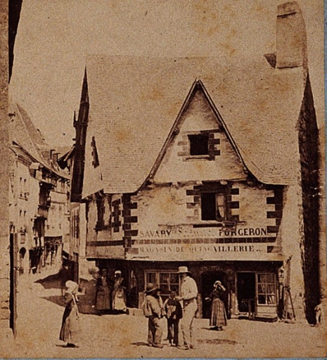 Maison en pan de bois disparue (angle place Carnot, rue Isole). Cl. Furne et Tournier, 1857 (Musée départemental breton, Quimper)Immatriculation
