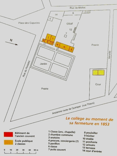 Le couvent transformé en collège. Etat en 1853 (restitution A. Pennec)Immatriculation