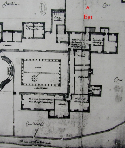 Plan de l'abbaye en 1664, détail des bâtiments conventuels (A.D. Finistère, 1 J 818)Immatriculation