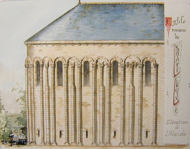 Elévation nord de l'abside du choeur après restauration. Dessin Gustave ou Joseph Bigot, vers 1868 (A.E. Quimper, Fonds Bigot)Immatriculation