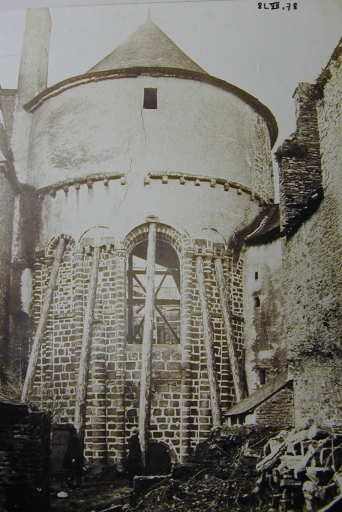Elévation est de l'abside du choeur après le sinistre de 1862. Photographie de Villard (A.E. Quimper, Fonds Bigot)Immatriculation