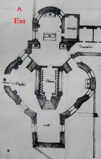 Plan de l'église. Etat en 1664 (A.D. Finistère, 1 J 818)Immatriculation