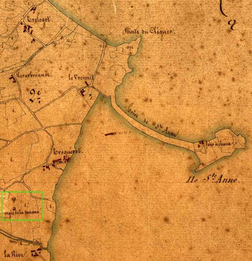 Plan de situation du corps de garde du champ de la Rive devenu vigie de la douane au cours du 19e siècle, extrait du tableau d'assemblage de la commune de Saint-Pol-de-Léon, 1848, Archives départementales du FinistèreImmatriculation