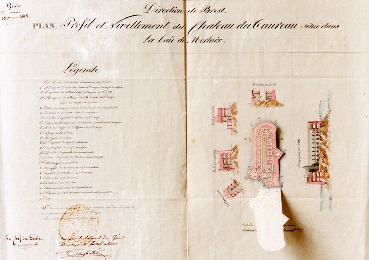 Plan du 1er étage et coupes du fort, Génie, Direction de Brest, 1818Immatriculation