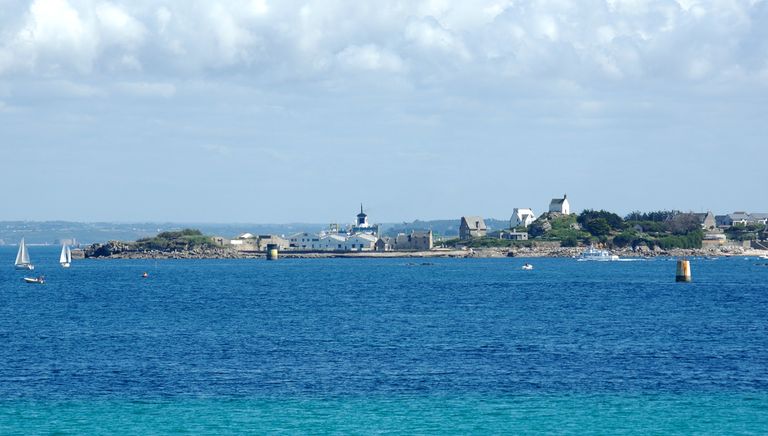 Vue de Roscoff depuis Bilvidic : en arrière-plan à gauche, le fort du TaureauImmatriculation