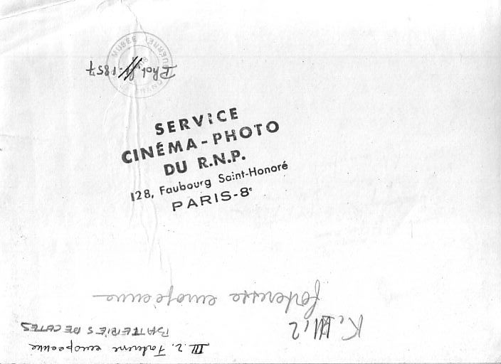 Légende au verso de la photographie et visa de la censure nazie, 1943Immatriculation