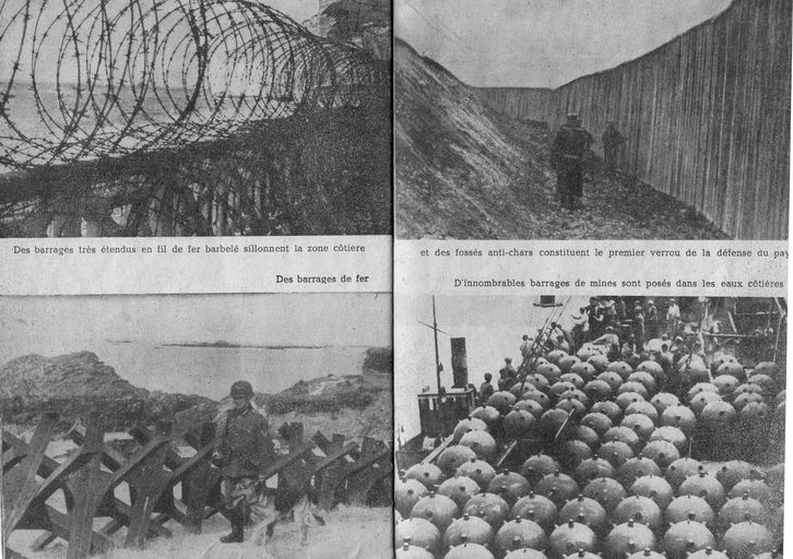 Ouvrage de propagande nazie intitulé "Laissez les tranquillement venir" utilisant le Mur de l'Atlantique : neuvième double page et ses légendesImmatriculation