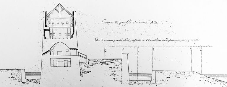 Coupe et profil suivant A-B, Génie, 1818Immatriculation