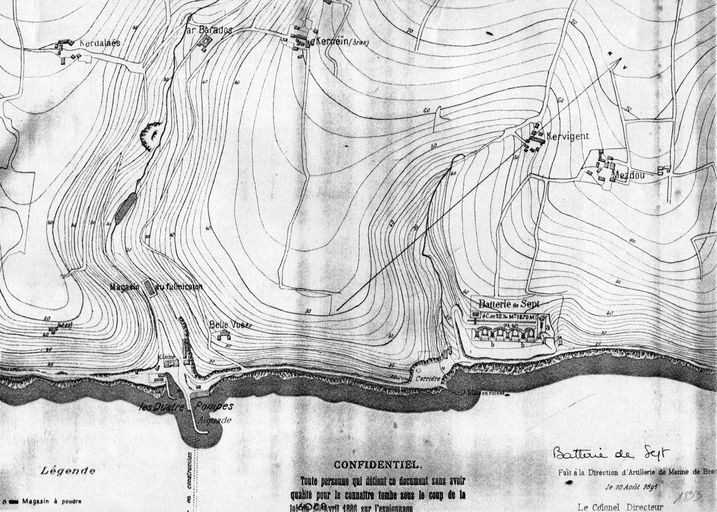 Plan de situation de la batterie de Sept, Atlas des batteries de côte : côte de Brest, 1893, VincennesImmatriculation