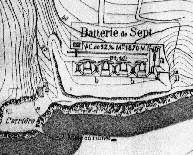 Extrait du plan de situation de la batterie de Sept, Atlas des batteries de côte : côte de Brest, 1893, VincennesImmatriculation