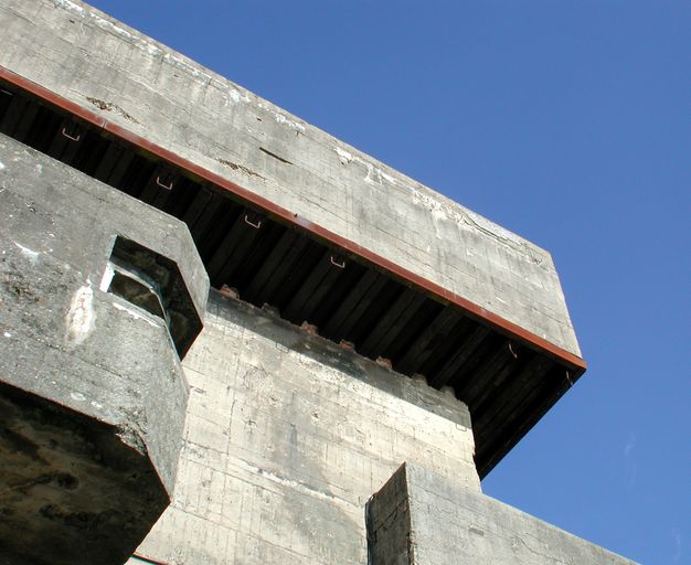 Vue de la base de sous-marins : front sud-ouest, détail de la casemate de défense de l'entrée ouest (2004)Immatriculation