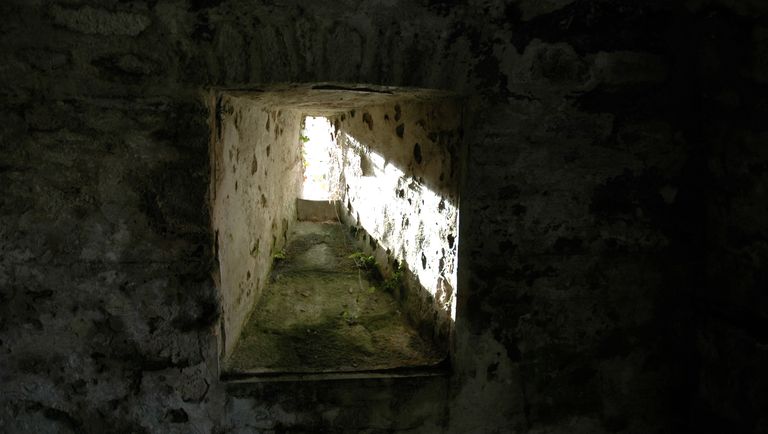 Intérieur du réduit : créneau de fusillade couvrant le fosséImmatriculation