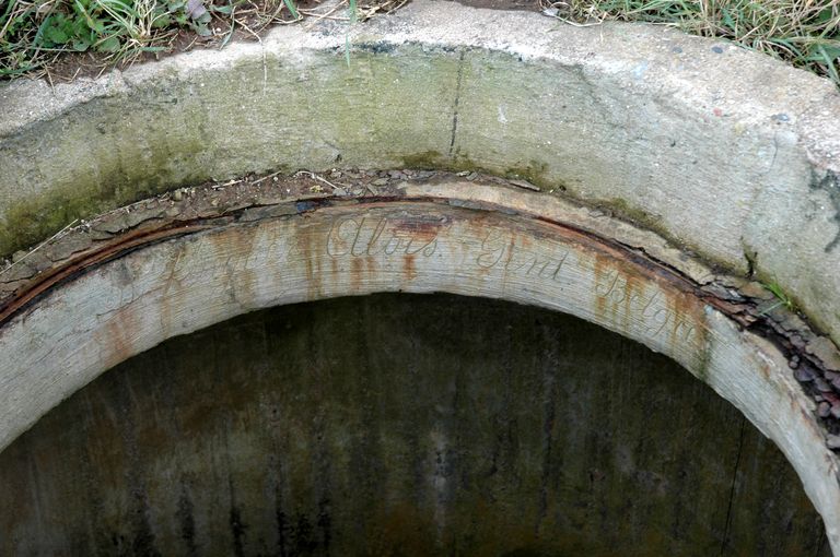 Vue de l'inscription gravée dans le béton (état en 2004)Immatriculation
